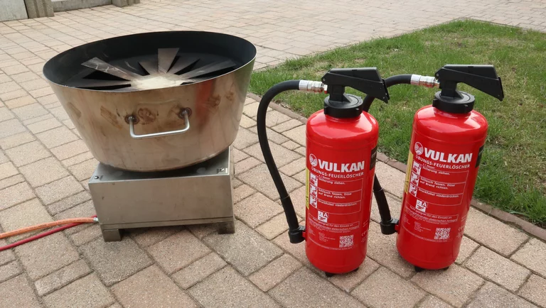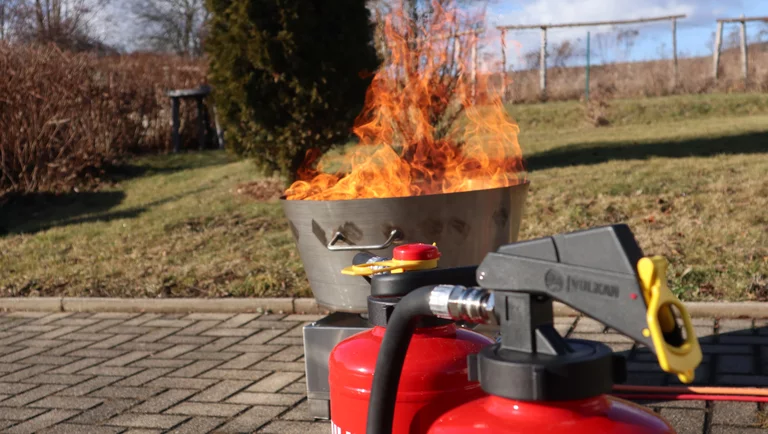 Umgang sowie richtiger Einsatz von Feuerlöschern an einem gasbetriebenen Feuerlöschtrainer